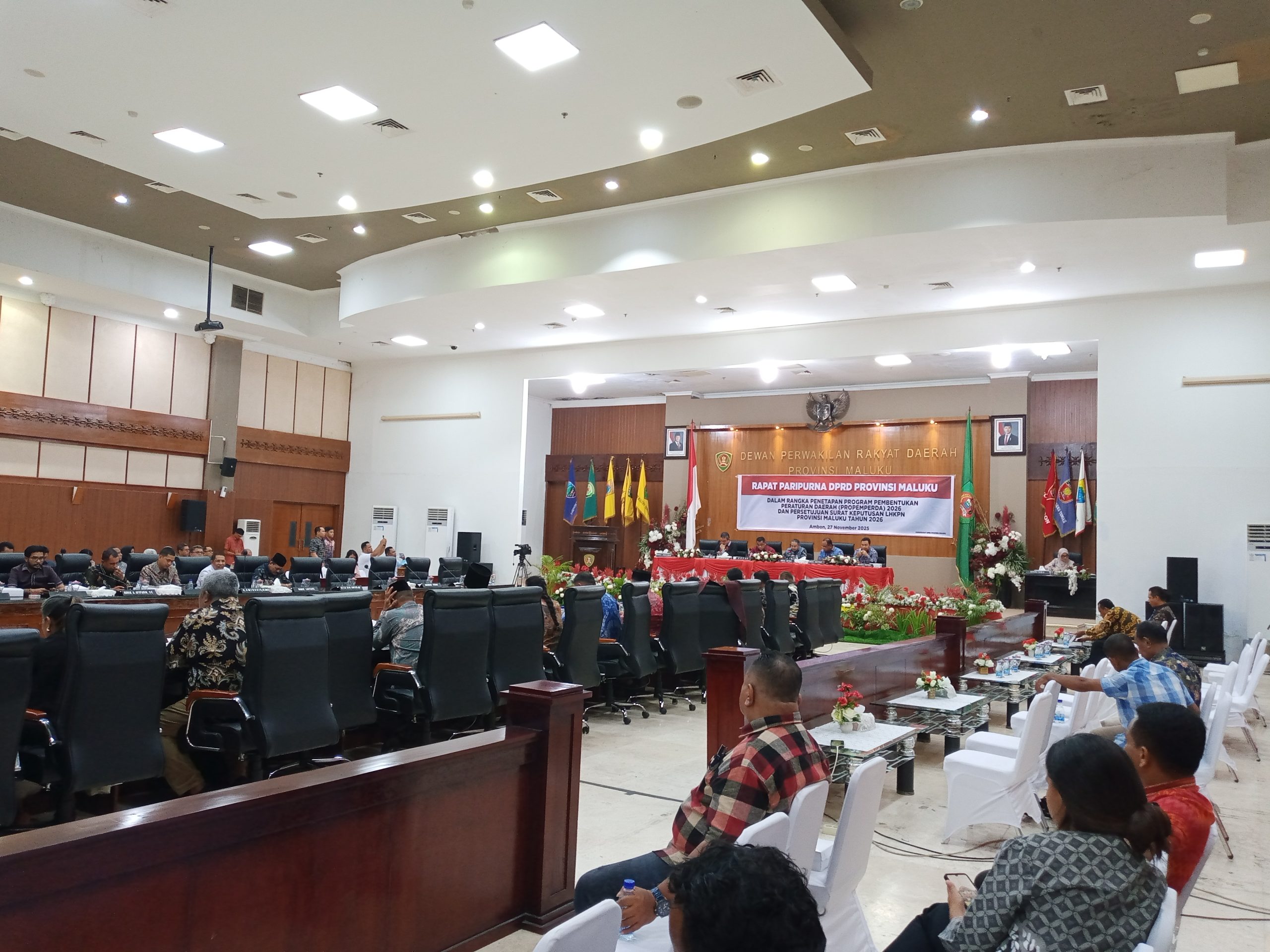 AMBON – Dewan Perwakilan Rakyat Daerah (DPRD) Provinsi Maluku menggelar rapat paripurna guna menetapkan Program Pembentukan Peraturan Daerah (Propemperda) 2026 serta menyetujui Surat Keputusan Laporan Harta Kekayaan Penyelenggara Negara (LHKPN) Provinsi Maluku tahun 2026.yang bertempat di ruang rapat paripurna DPRD Maluku,Kamis(27/11/2025)