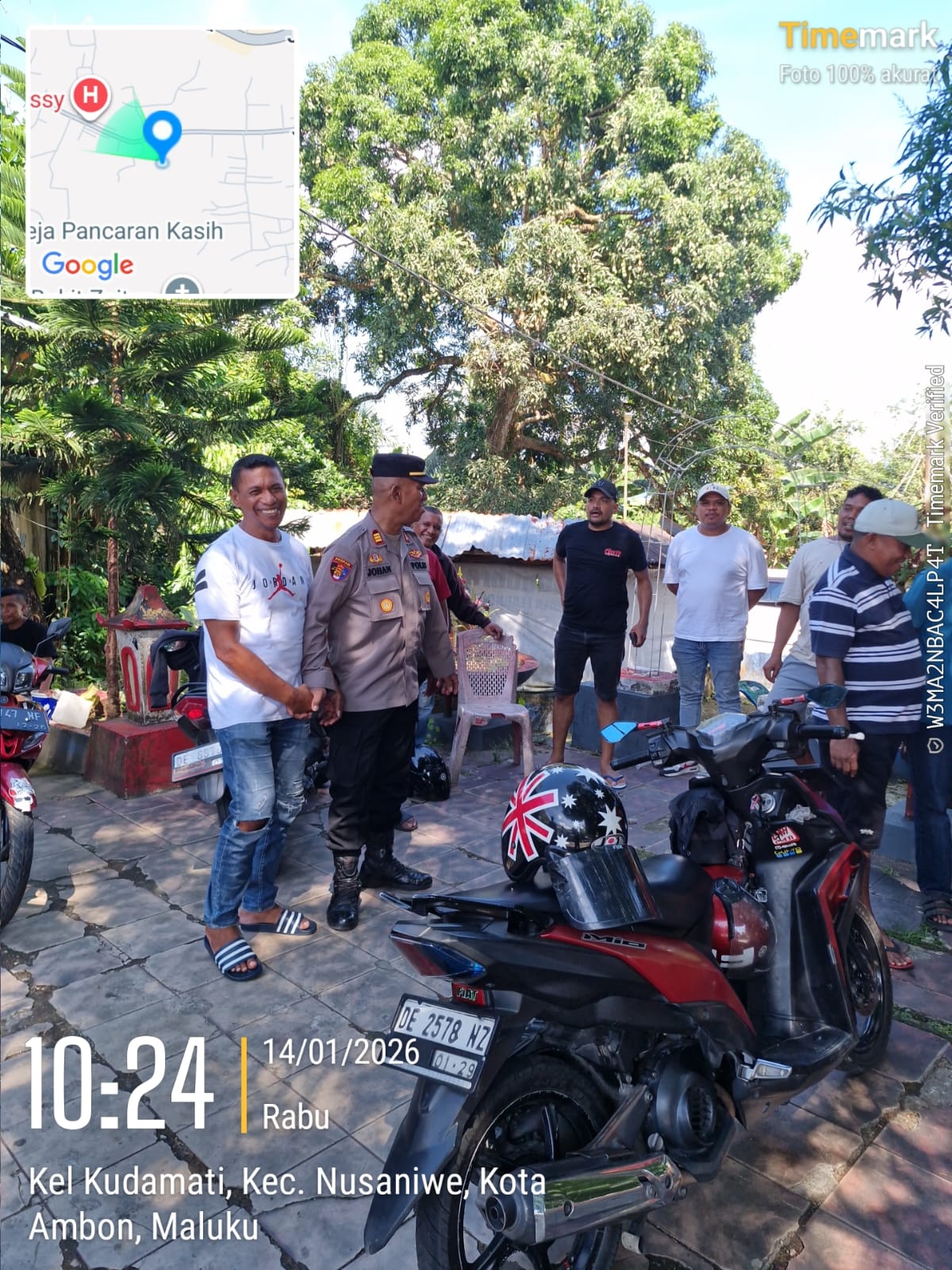 Kegiatan tersebut berlangsung pada Rabu (14/01/2026) sekitar pukul 10.35 WIT, bertempat di Lorong Choker, Kelurahan Kudamati, Kecamatan Nusaniwe, Kota Ambon. Dalam kesempatan tersebut, Kapolsek Nusaniwe menyambangi para pemuda dan warga setempat sebagai wujud kehadiran Polri di tengah masyarakat.