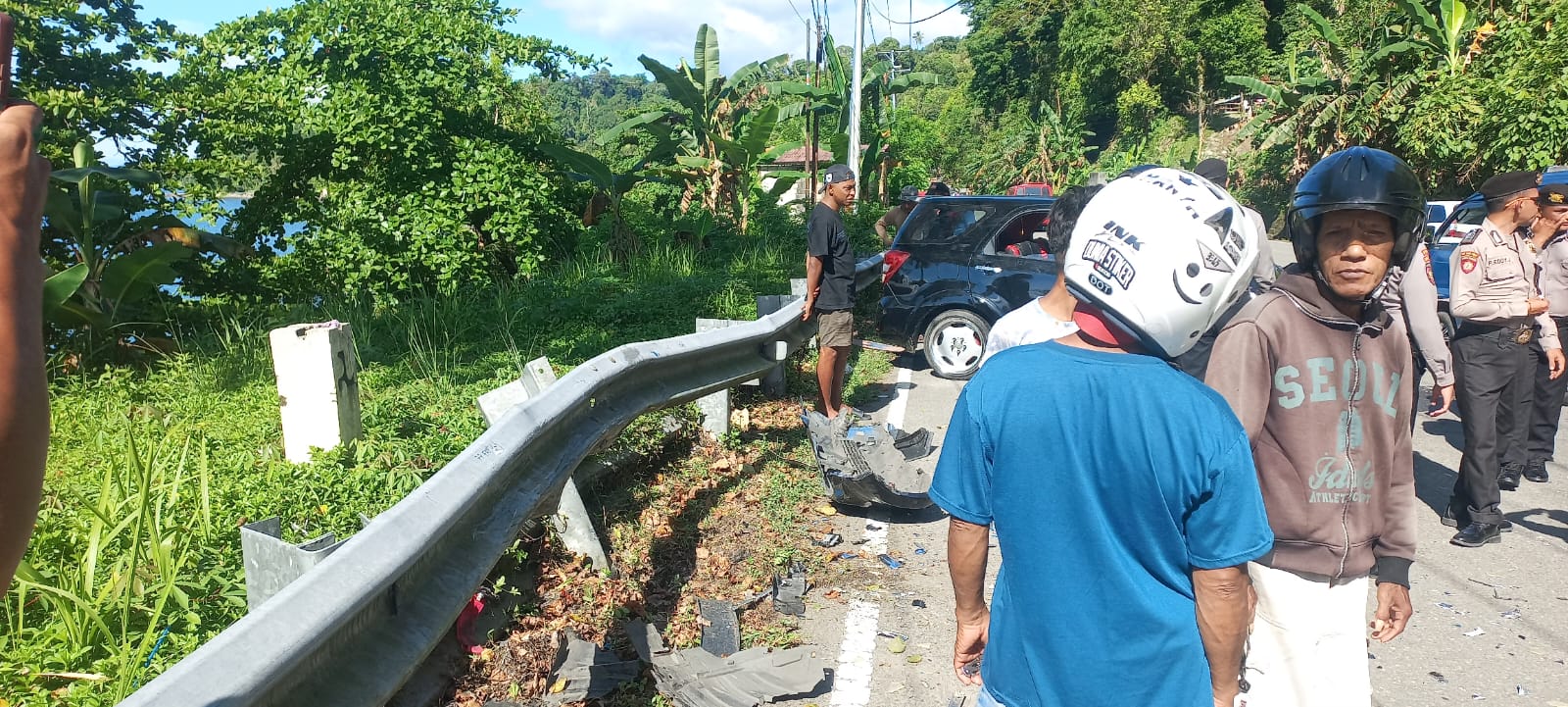 Menurut informasi, pengemudi tidak bisa mengendalikan laju kendaraannya sehingga menabrak pembatas jalan. Akibatnya, pengemudi dan dua penumpang mengalami luka-luka dan dilarikan ke RSUP Dr. J. Leimena untuk mendapatkan perawatan medis.