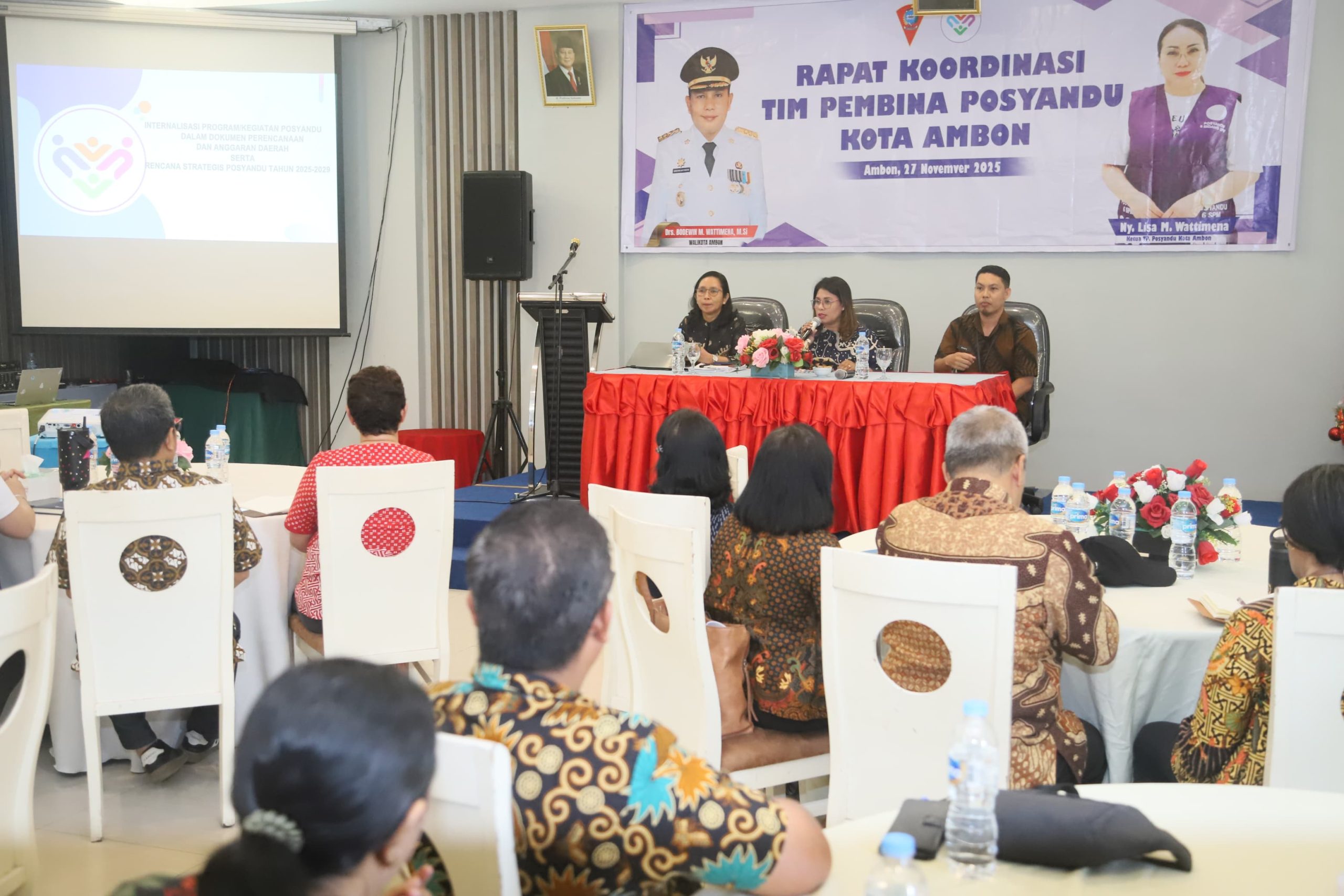 AMBON – ketua Tim pembina posyandu kota Ambon, Lisa Watimena dalam sambutannya pada rapat koordinasi Pembina Posyandu Kota Ambon,yang bertempat di everbright hotel,kamis(27/11/2025)