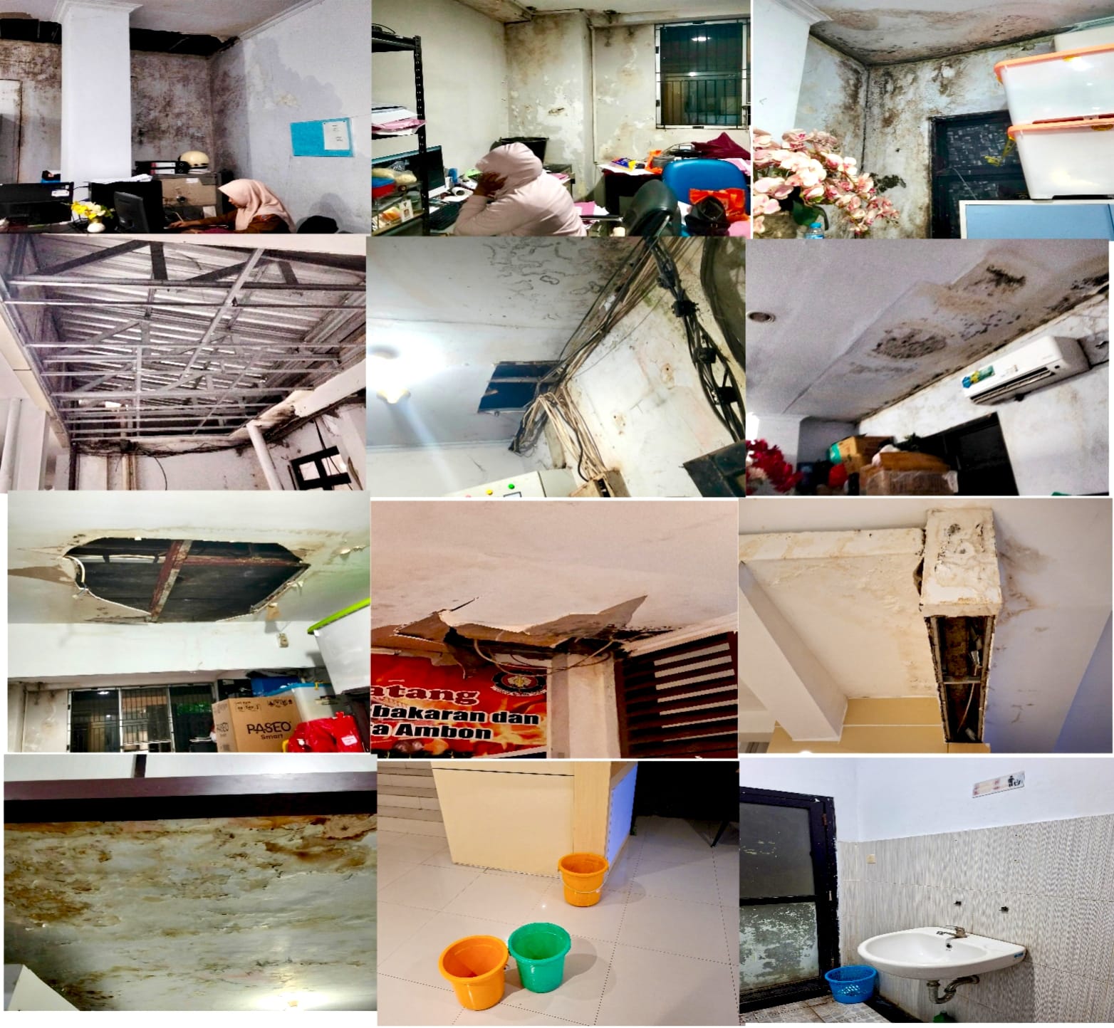 Pada kesempatan yang sama, Salah satu pegawai lingkup pemkot Ambon, yang namanya tidak mau disebutkan menyampaikan kondisi yang terjadi, kita bisa lihat saat ini kondisi hujan pemkot Ambon bocor dimana -mana, air merembes dimana- mana, ada juga karena bocor air tergenang contohnya di depan ruangan kepala keuangan. Ini contoh yang nyata dan realita yang yerjadi saat ini.