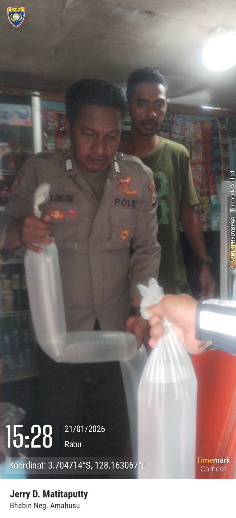 Polresta Ambon – Dalam rangka menciptakan situasi kamtibmas yang aman dan kondusif, Polsek Nusaniwe melaksanakan kegiatan Kegiatan Rutin Yang Ditingkatkan (KRYD) berupa Operasi Razia Minuman Keras di wilayah hukumnya, Rabu (21/1/2026) sore.Kegiatan tersebut dilaksanakan sekitar pukul 15.32 WIT, bertempat di Kelurahan Benteng RT 003 RW 08, Kecamatan Nusaniwe, Kota Ambon. Operasi razia dipimpin oleh Ka SPK II Aiptu Halbab bersama tiga personel Polsek Nusaniwe, serta dimonitor langsung oleh Kapolsek Nusaniwe AKP Johan W.M. Anakotta didampingi Wakapolsek IPDA Yuli Masbaitubun, S.Sos.Kegiatan ini bertujuan untuk menekan peredaran minuman keras tradisional jenis sopi di lingkungan masyarakat serta meminimalisir penyakit masyarakat lainnya yang berpotensi menimbulkan gangguan kamtibmas dan konflik sosial.Dalam pelaksanaan razia tersebut, personel Polsek Nusaniwe berhasil mengamankan barang bukti berupa minuman keras tradisional jenis sopi sebanyak 10 liter. Selanjutnya, barang bukti tersebut diamankan untuk proses lebih lanjut sesuai ketentuan yang berlaku.Selama pelaksanaan kegiatan, operasi berjalan dengan aman, tertib, dan lancar. Situasi kamtibmas di wilayah hukum Polsek Nusaniwe terpantau dalam keadaan aman dan kondusif.Polsek Nusaniwe akan terus melaksanakan kegiatan preventif dan penegakan hukum secara berkelanjutan sebagai bentuk komitmen Polri dalam menjaga keamanan dan ketertiban masyarakat, khususnya di wilayah Kecamatan Nusaniwe.