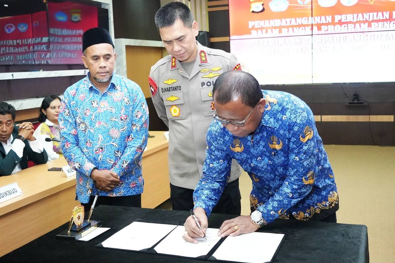 UNPATTI,- Rektor Universitas Pattimura teken Perjanjian Kerja Sama dengan Kapolda Maluku, Kepala Dinas Kependudukan dan Pencatatan Sipil, Kepala Dinas Pendidikan dan kebudayaan, Kepala Dinas Pemuda dan Olahraga, Ketua IDI, Ketua Himpsi, Koordinator LSM Mafindo, dan Pimpinan Media Online PotretMaluku.id, yang berlangsung di Ruangan Command Center LT. 4 Polda Maluku, Kamis (12 Maret 2025), disaksikan oleh Kepala Ombudsman RI Perwakilan Maluku, Bapak. Hasan Slamat, S.H, M.H.