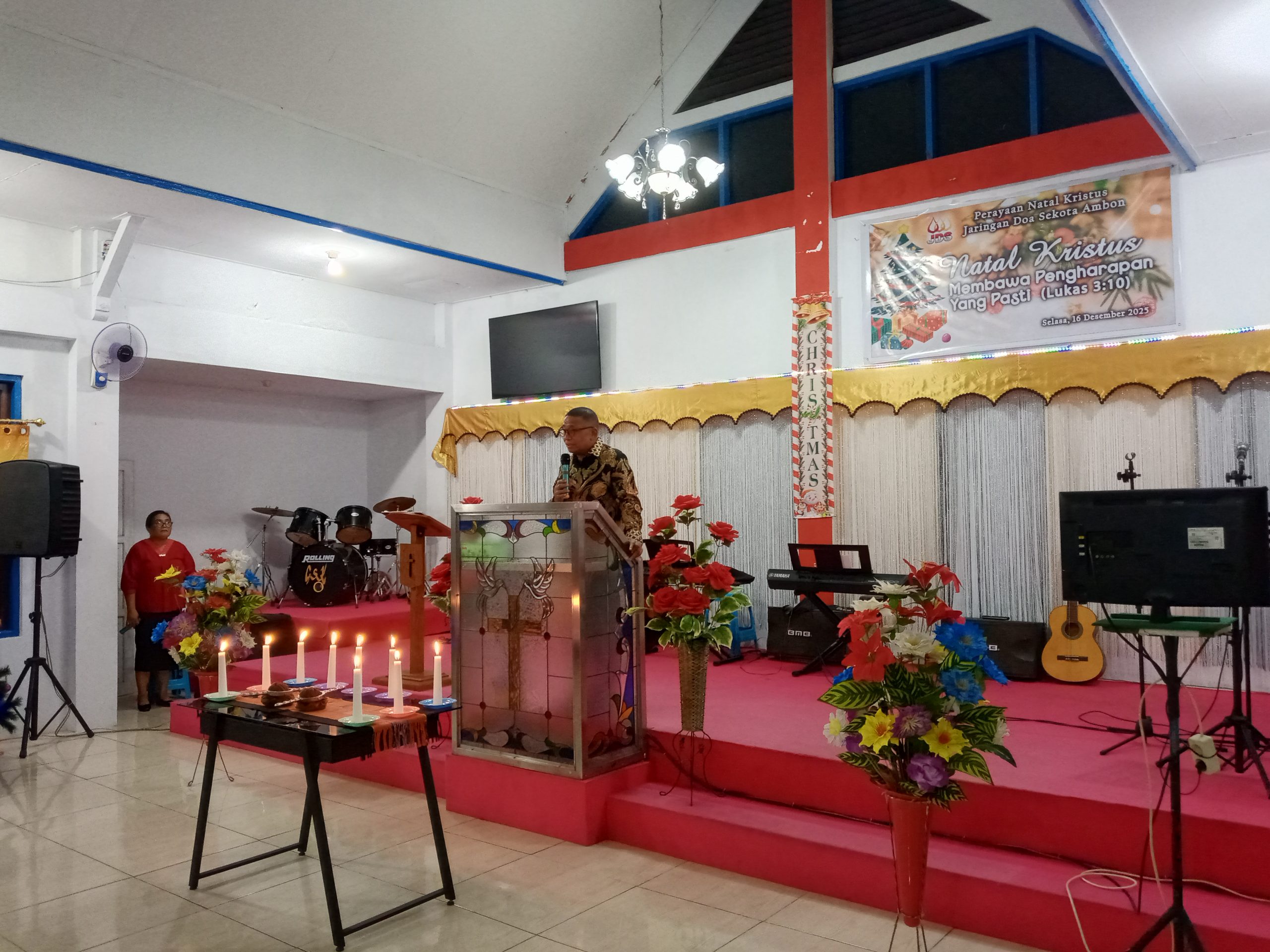 AMBON  – Dalam perayaan Natal keluarga besar Jaringan Doa Sekota Ambon yang digelar di rumah gereja suara penebusan ,Selasa (16/12/2025) sekertaris kota Ambon (Sekot) Robby Sapulette menekankan peran krusial jaringan doa sebagai kekuatan “tidak terlihat” yang mendukung pembangunan kota ambon