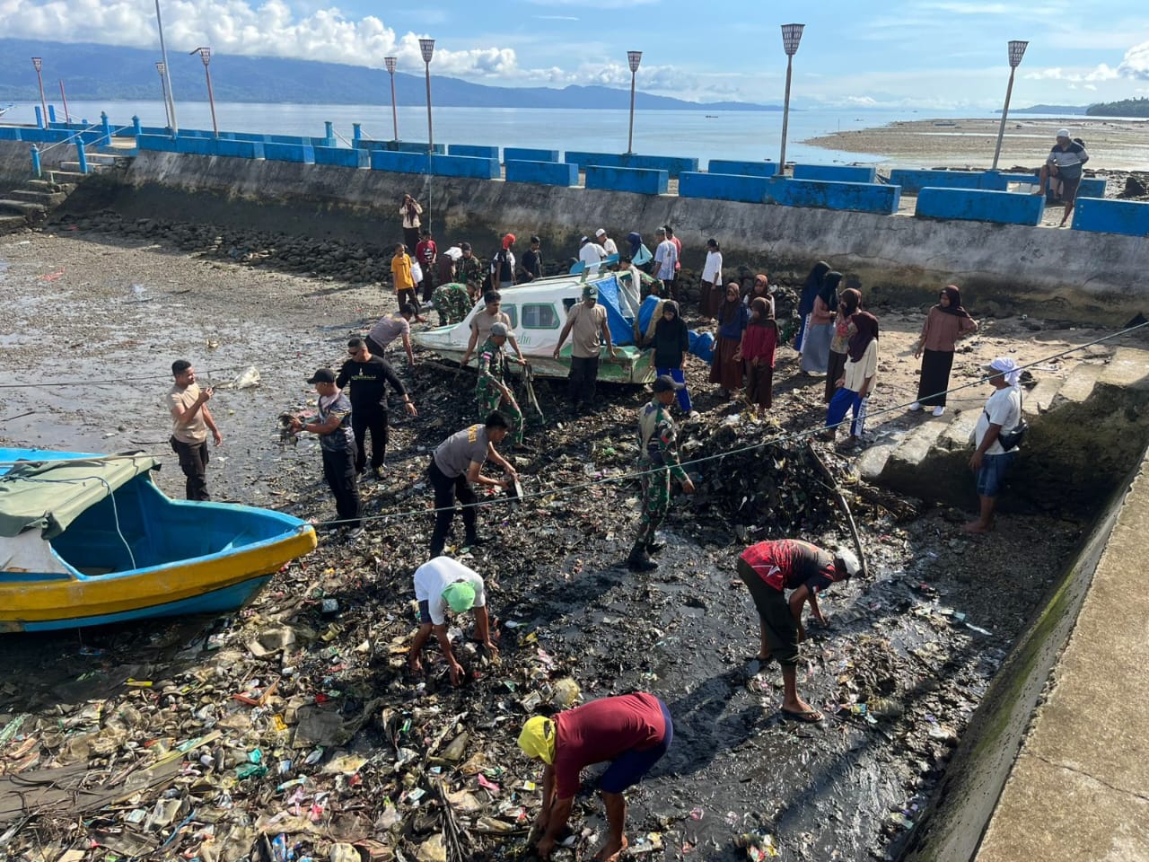 TNI-POLRI dan masyarakat Negeri Pelauw menggelar aksi bersih pantai di Pelabuhan Naita, Namalatu, Negeri Pelauw pada Sabtu,(25/10/2025)