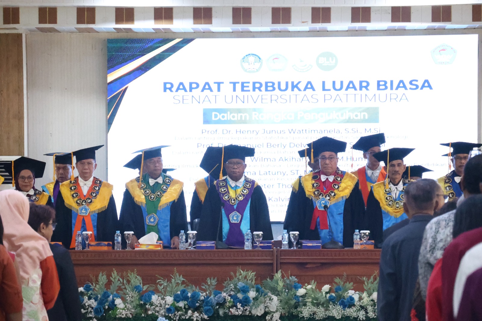 Pengukuhan tersebut menetapkan enam dosen Universitas Pattimura sebagai profesor, masing-masing Prof. Dr. Henry Junus Wattimanella, S.Si., M.Si. dengan kepakaran Statistika Spasial pada Fakultas Sains dan Teknologi; Prof. Dr. Imanuel Berly Delvis Kapelle, S.Si., M.Si. dengan kepakaran Kimia Bahan Alam pada Fakultas Sains dan Teknologi; serta Prof. Dr. Wilma Akihary, S.Pd., M.Hum. dengan kepakaran Pendidikan Bahasa dan Linguistik pada Fakultas Keguruan dan Ilmu Pendidikan.