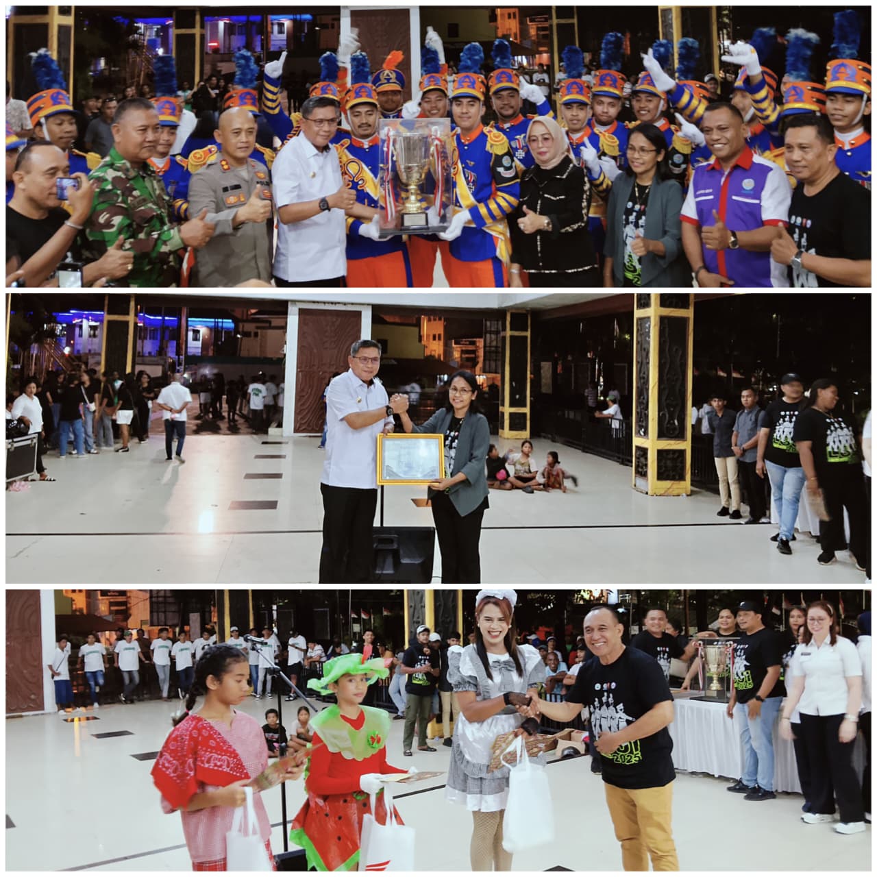 Ambon,-Wali Kota Ambon, Bodewin Wattimena, menyerahkan Piala bergilir Wali Kota kepada juara umum Lombah Gerak Jalan Indah Tahun 2025,Pemuda Mangga Dua Dengan Jumlah Nilaii 4942.